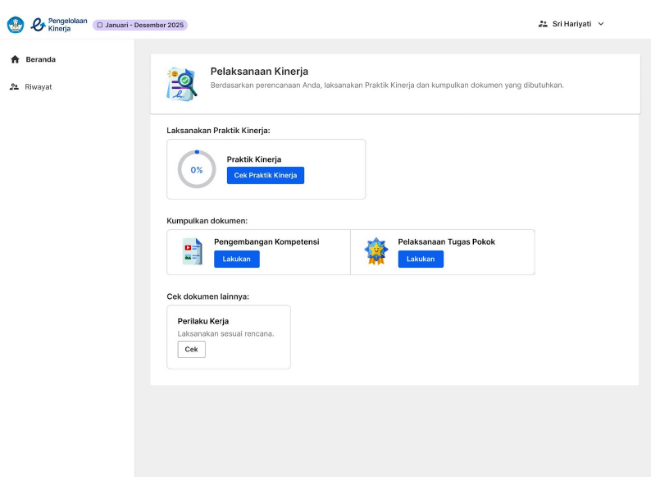 Proses ini dilaksanakan melalui berbagai sistem informasi agar seluruh tahapan pengelolaan kinerja, mulai dari perencanaan hingga penilaian, dapat berlangsung secara lancar dan berbasis data yang valid.