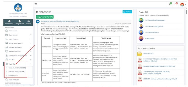 2. Pilih menu โHasil TKAโ kemudian klik submenu โDaftar Kolektif DKHTKAโ.