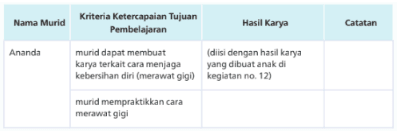 12. Pendidik menyediakan ragam kegiatan unjuk kerja merawat gigi yang dapat dipilih murid seperti: