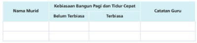 Inspirasi contoh aktivitas 2 : Kebiasaan Bangun Pagi dan Tidur Cepat