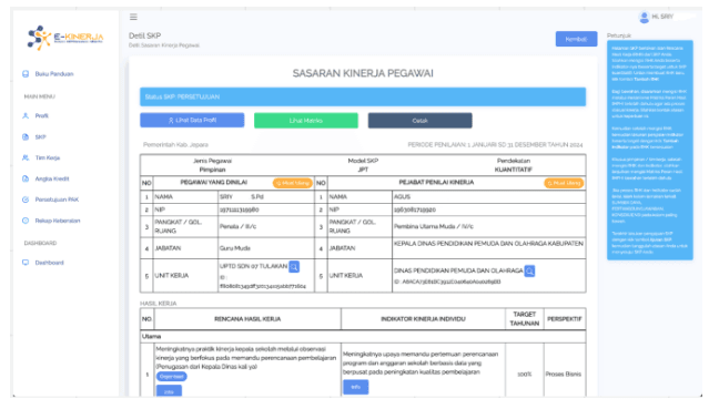 Setelah Anda berhasil melakukan sinkronisasi, tampilan konten SKP di e-Kinerja BKN akan terlihat sesuai dengan rencana yang telah dibuat di Ruang GTK.