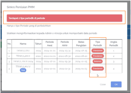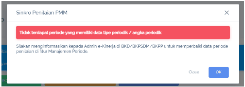 • Tindak Lanjut: Admin Instansi harus memperbarui periode agar memilikiย tipe periodikย danย angka periodikย yang sesuai.