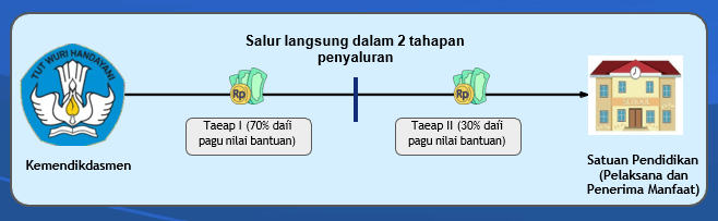 - Bantuan pemerintah diberikan dalam bentuk uang kepada satuan pendidikan