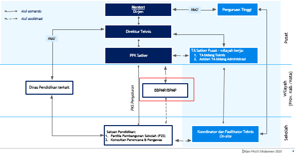 - Tim Koordinasi Rehab Wilayah dan Fasilitator yang bertugas membantu sekolah dalam perencanaan dan pelaksanaan pembangunan.
