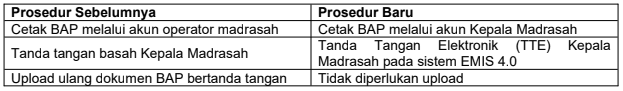 Dalam rangka meningkatkan efisiensi dan akuntabilitas pemutakhiran data Education Management Information System (EMIS) 4.0, serta mendukung digitalisasi layanan administrasi madrasah, diberitahukan bahwa mulai Semester Ganjil/Genap Tahun Pelajaran 2025/2026 diberlakukan perubahan proses bisnis penyelesaian Berita Acara Pendataan (BAP) EMIS sebagai berikut.